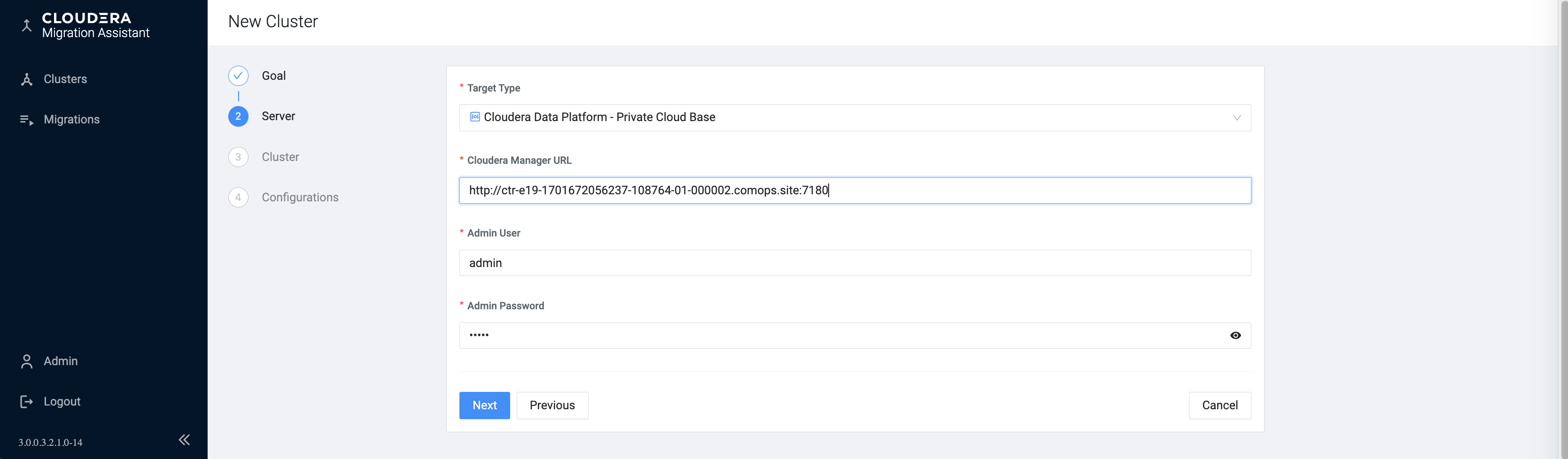 This section helps you to register the Ambari Cloudera Manager pair for the target cluster which is the CDP Private Cloud Base.