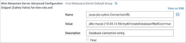 metastore by modifying hive-site.xml indirectly using the Cloudera