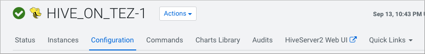 In Cloudera Manager, click Clusters > Hive on Tez > Configuration, and click to the HiveServer Web UI.