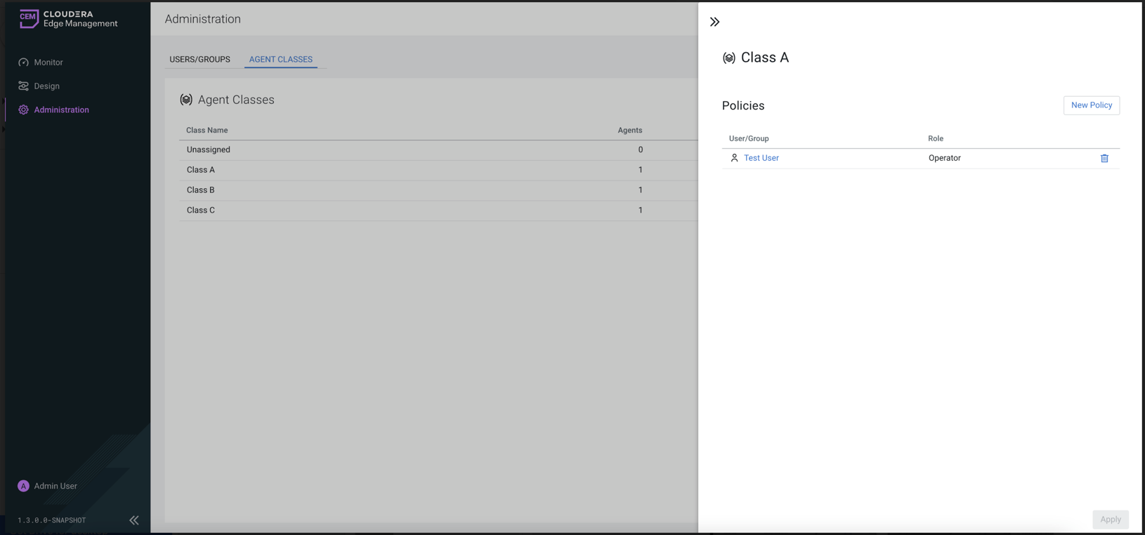Assigning policies to agent classes