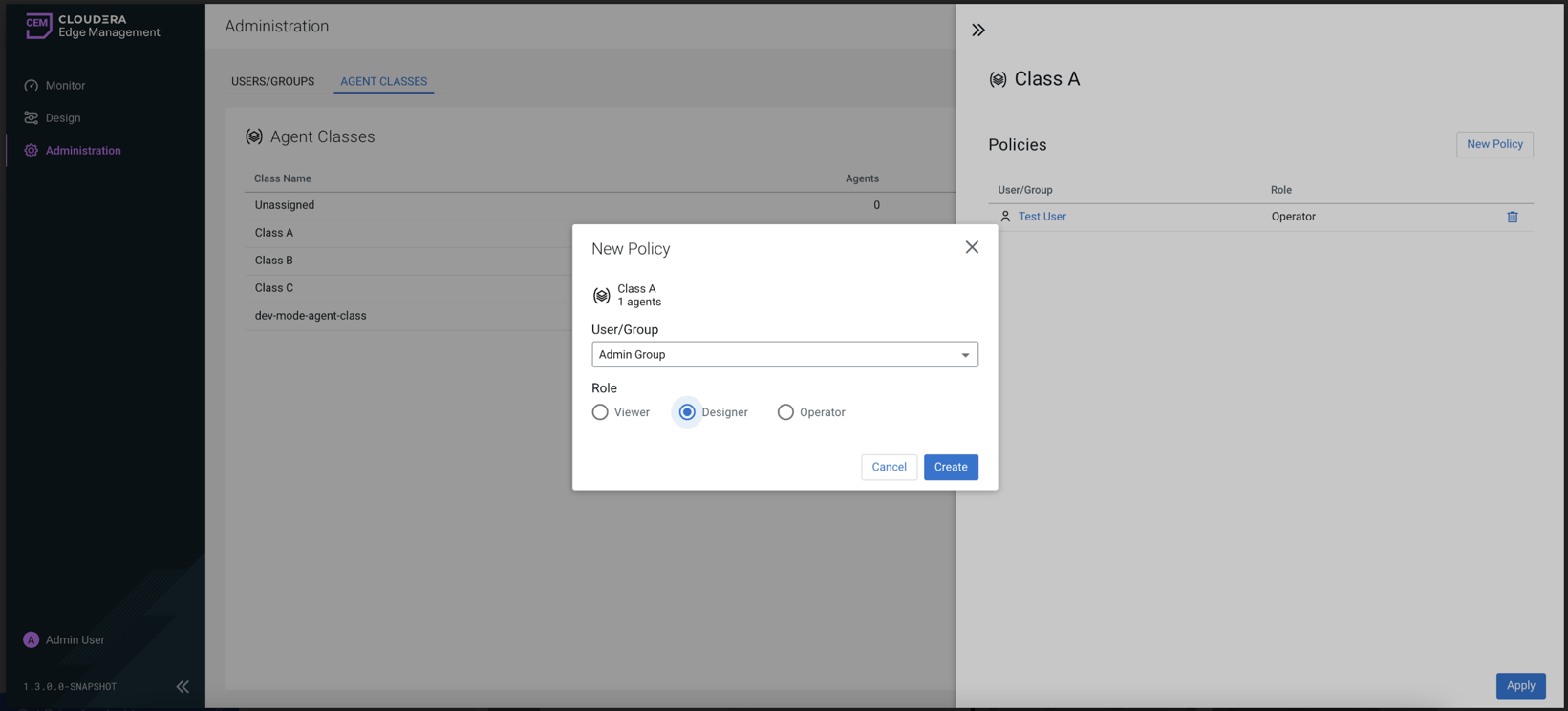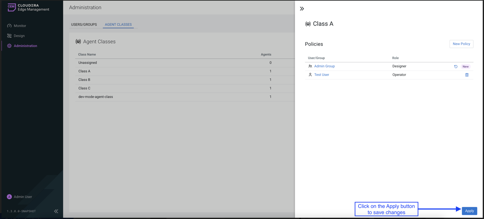Click Administration in the Cloudera Edge Management