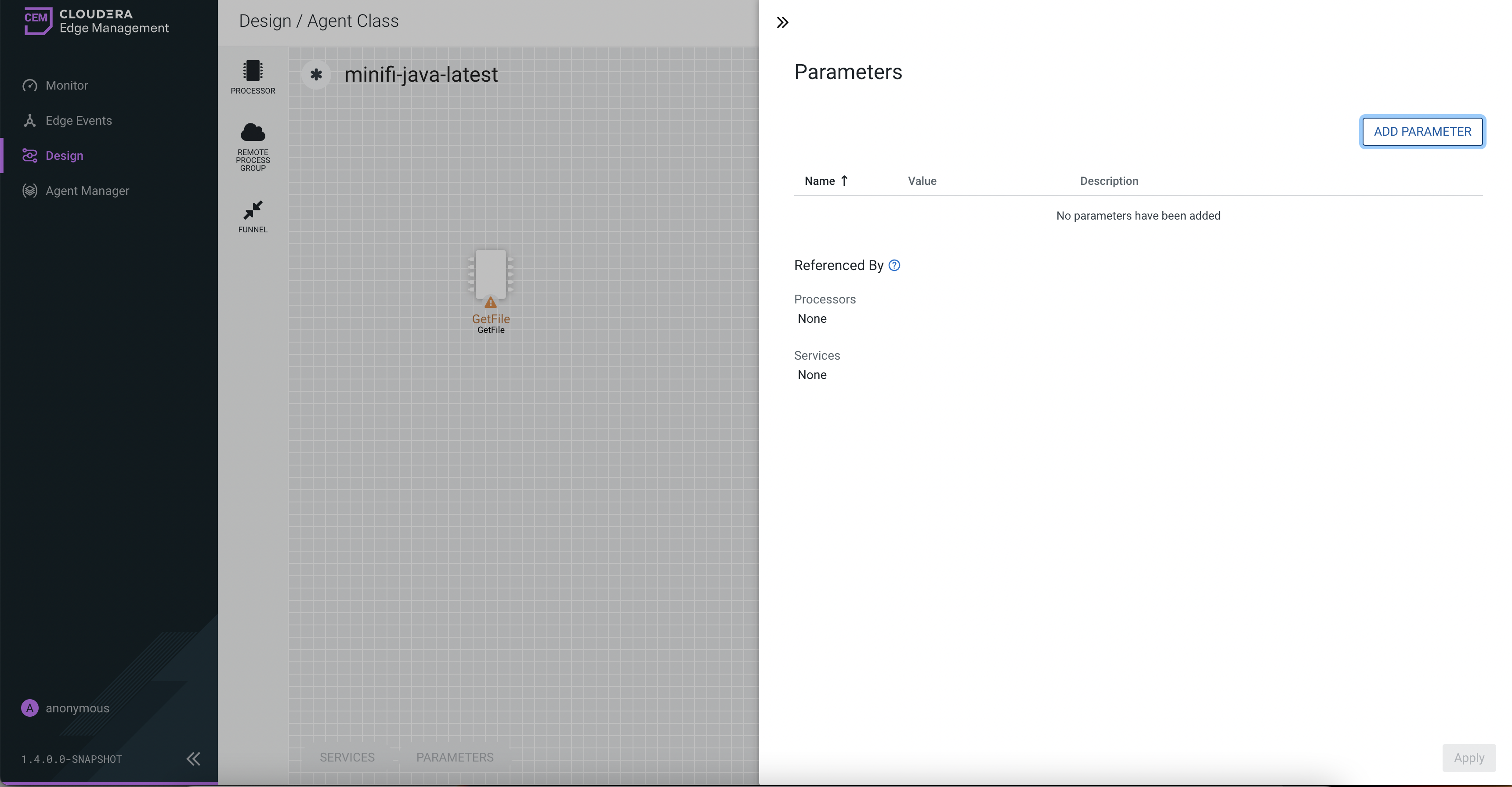 Learn how to add parameters using the Cloudera Edge Management (CEM) UI.