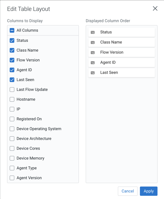 listing table. In addition you can also modify the order of the columns. To open the editor,