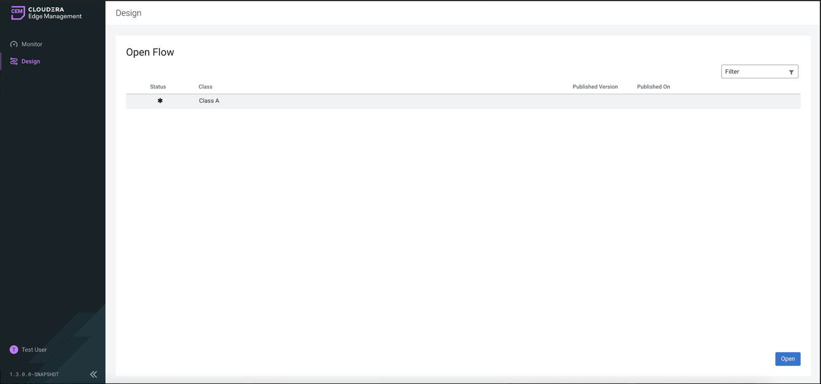 The flow designs and event lists are filtered based on authorization. So, only those items are visible, which are related to the agent class the user is assigned to. In the following case, only Class A is visible as roles are assigned only to Class A for this user (though Class B and Class C exist as well for this user).