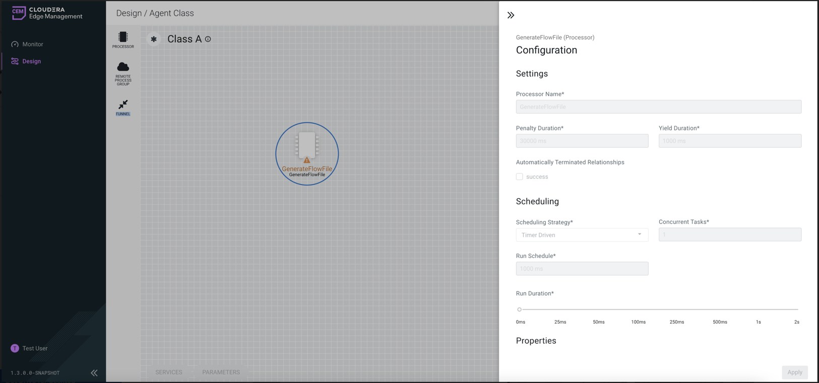 Operator can monitor events and publish the design without editing it for the given agent class and is able to modify flow and parameter mappings.