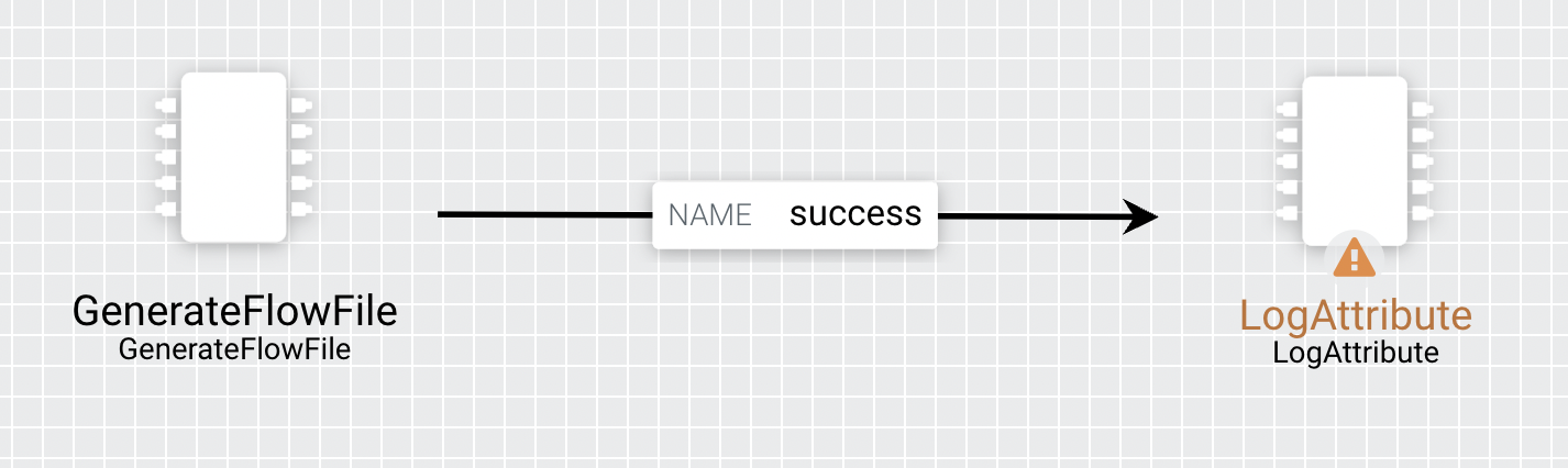Drag the GenerateFlowFile and LogAttribute processors to the canvas and connect