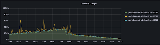 There is a slight increase in the CPU usage compared to the baseline test case. CPU usage is