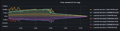 Accumulated in-bound network traffic is between 20 and 30 MB/s. Compared to the baseline test