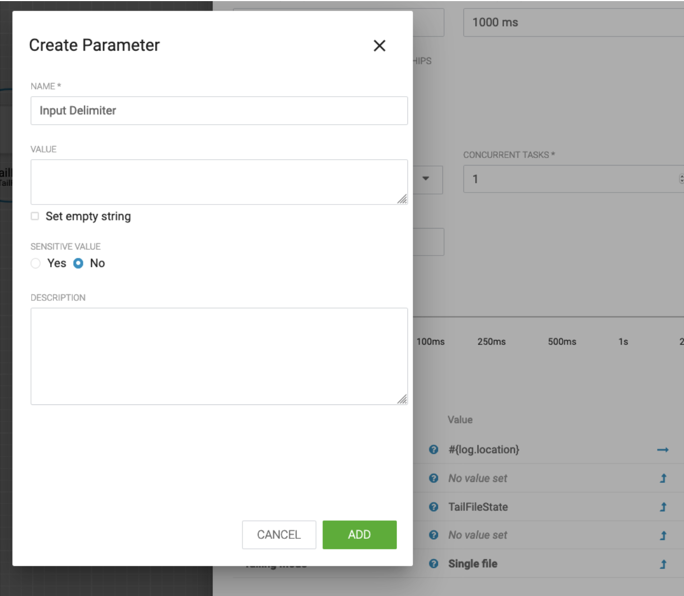 [ { "name": "parameter name 1", "sensitive": false, "description": "Agent parameter name override ", "value": "parameter value" } ] - In the CEM UI, push publish to deploy flow to agents with associated parameter contexts.