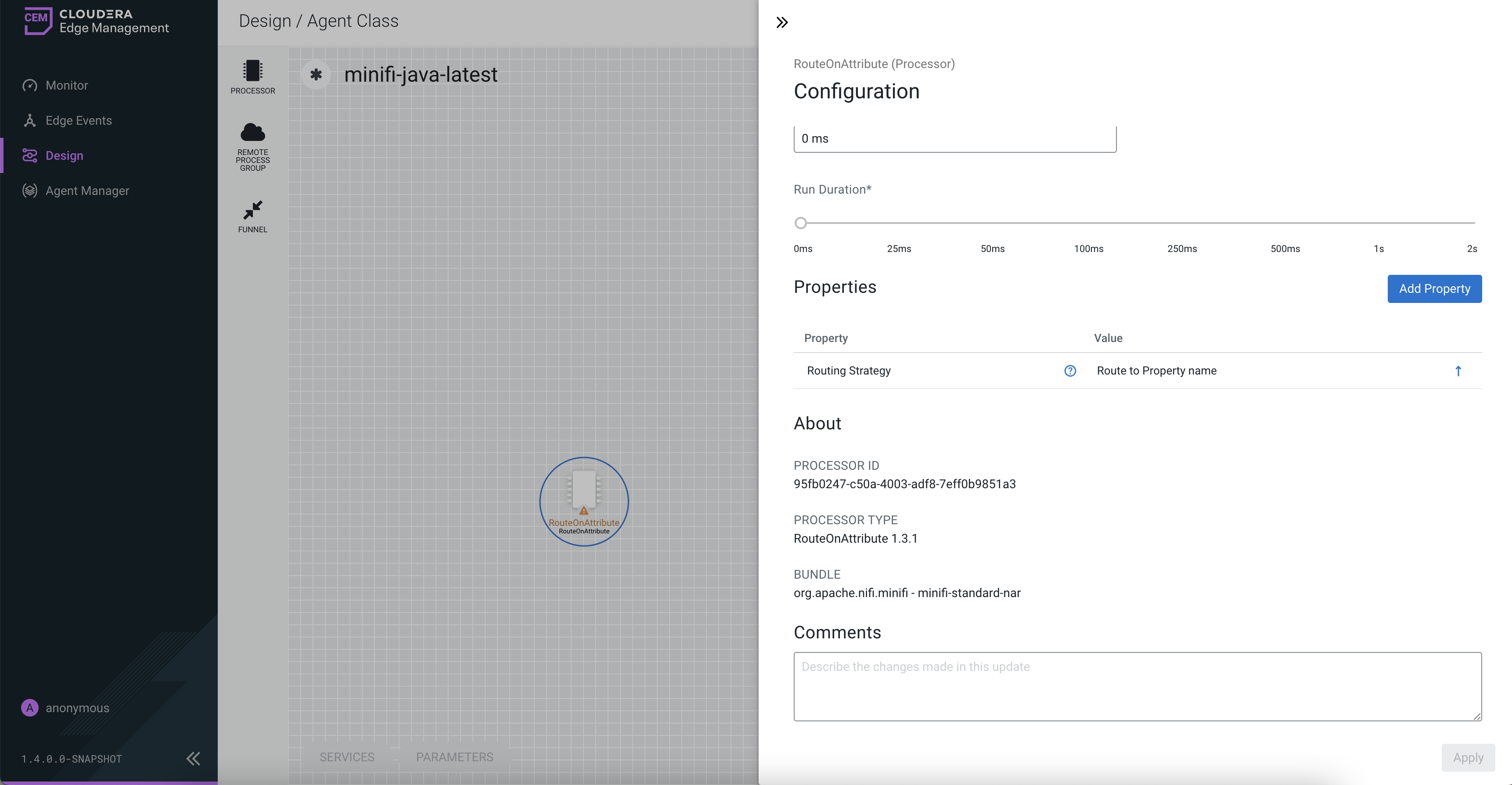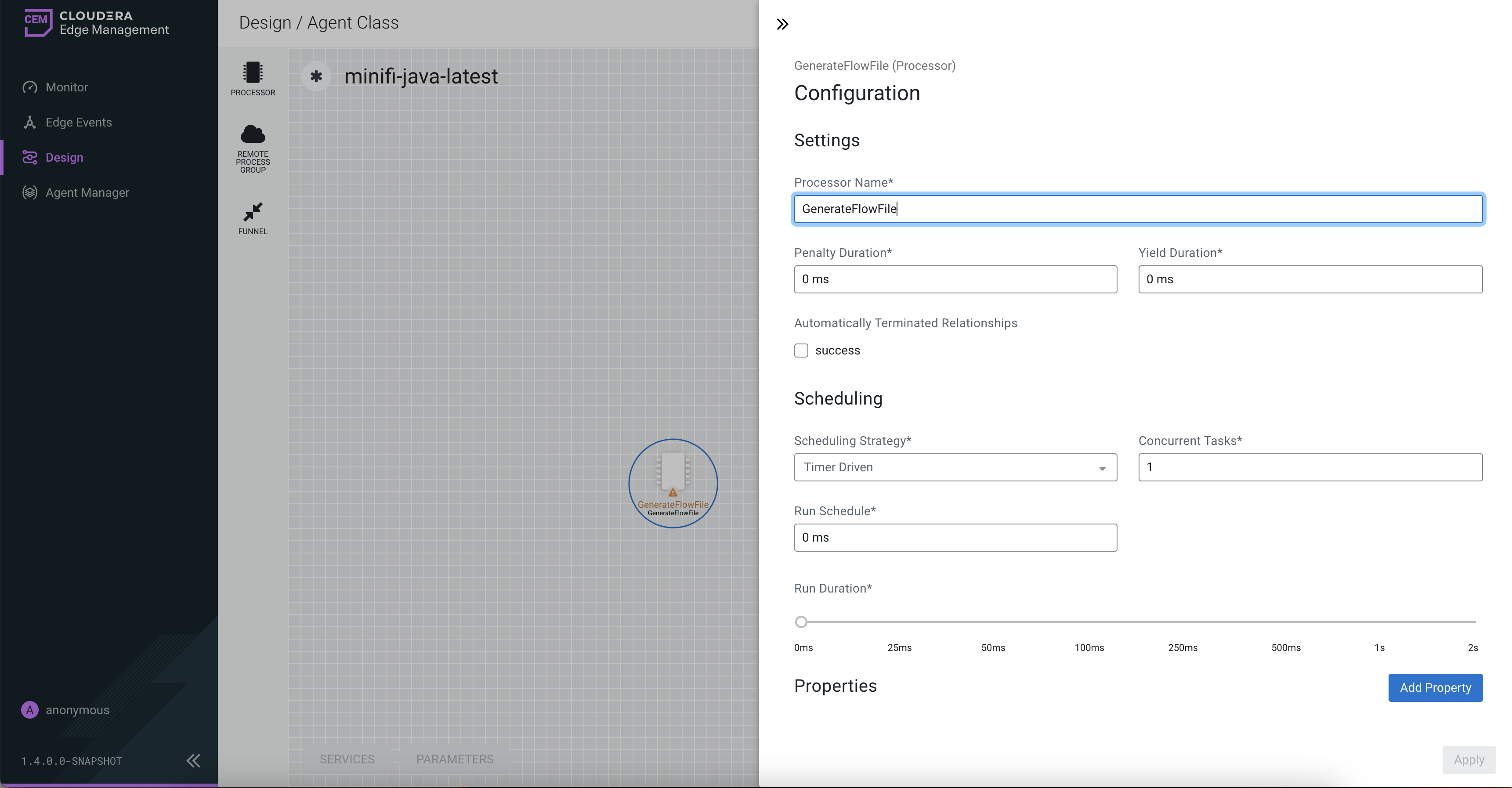 Learn how to configure a processor using the Cloudera Edge Management (CEM) UI.