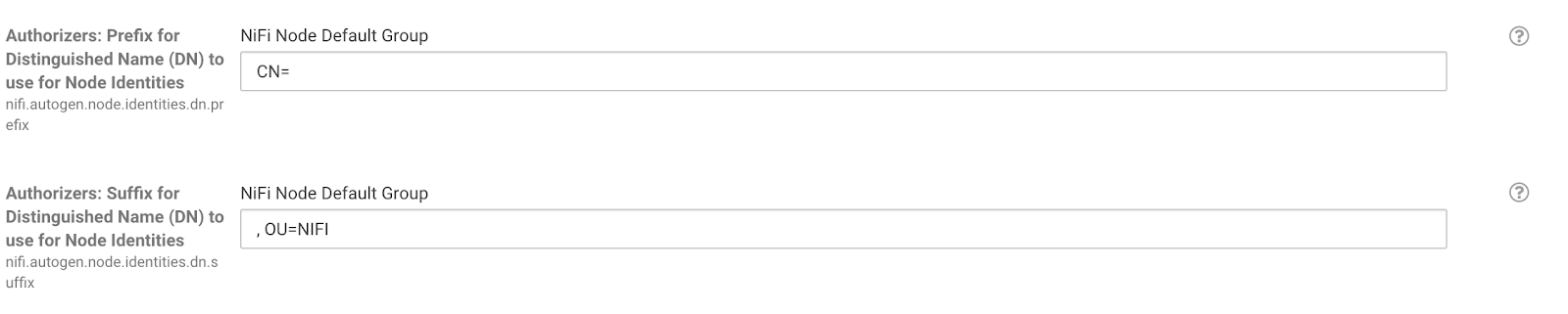 NiFi Node Default Group box.