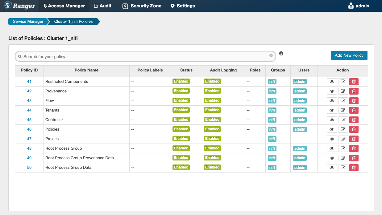 - Pre-defined Ranger access policies for NiFi resources