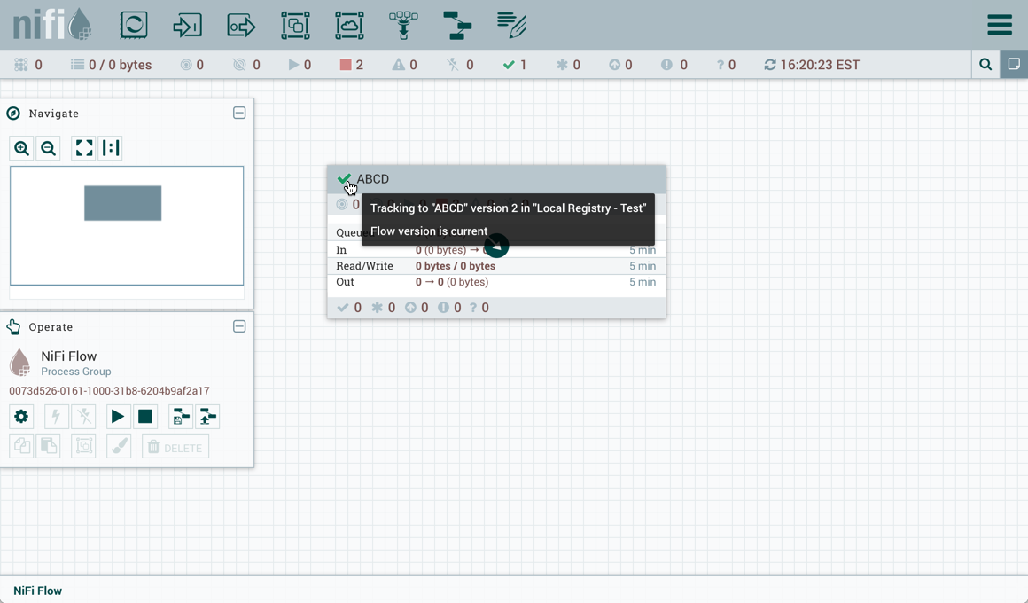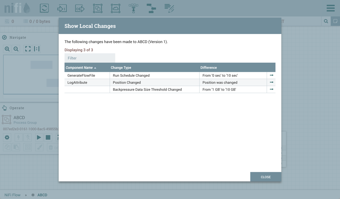 Changes made to the versioned process group can be reviewed, reverted or saved.