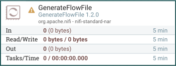 Before trying to start a Processor, it's important to make sure that the Processor's configuration is valid. A status indicator is shown in the top-left of the Processor. If the Processor is invalid, the indicator will show a yellow Warning indicator with an exclamation mark indicating that there is a problem: