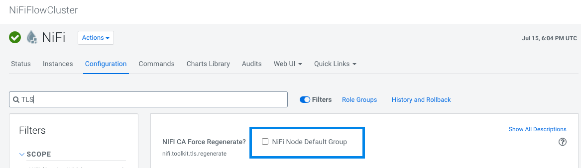 Once you have turned off TLS regeneration, back up your keystore and truststore values for NiFi and NiFi Registry, and then proceed with the upgrade to CFM 2.0.1.