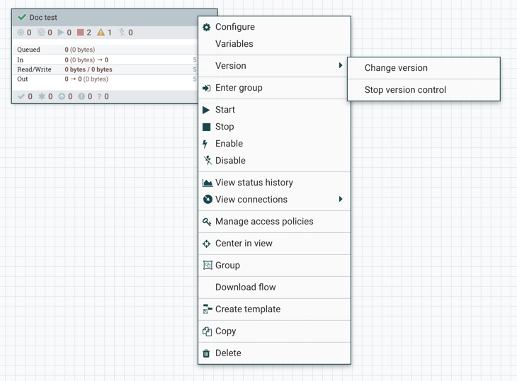 If you have multiple versions of a data flow saved in NiFi Registry, you can go back to any of the versions. Learn how you can change the versions of your data flows in NiFi.