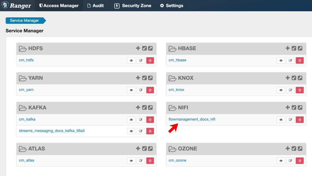 1. From the base cluster with Ranger, click the Ranger icon.