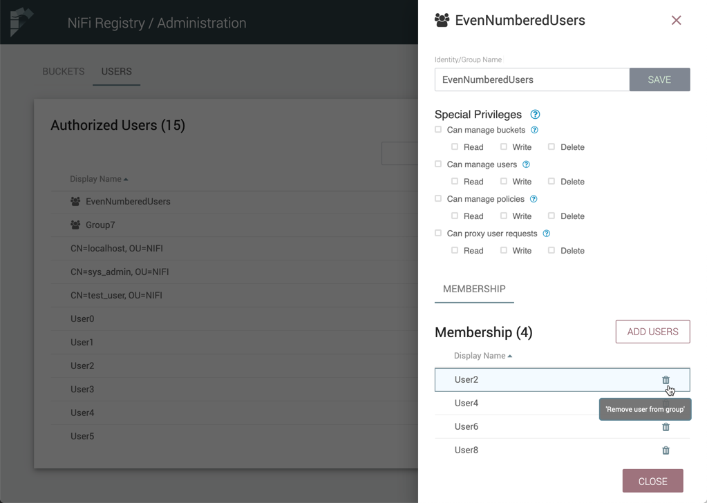 2. In the Membership section of the window, select the Remove button () in the row of the user.