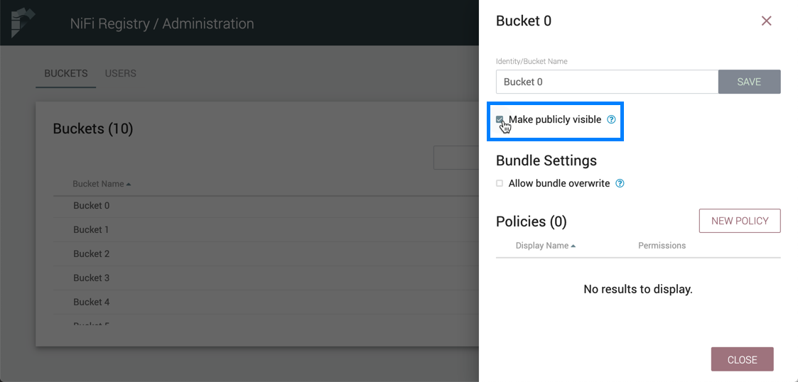 To allow read access to items in a bucket by unauthenticated users, select the "Make publicly visible" checkbox.