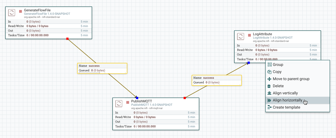 Here is an example of aligning components horizontally on your canvas. With all components selected/highlighted, right-click: