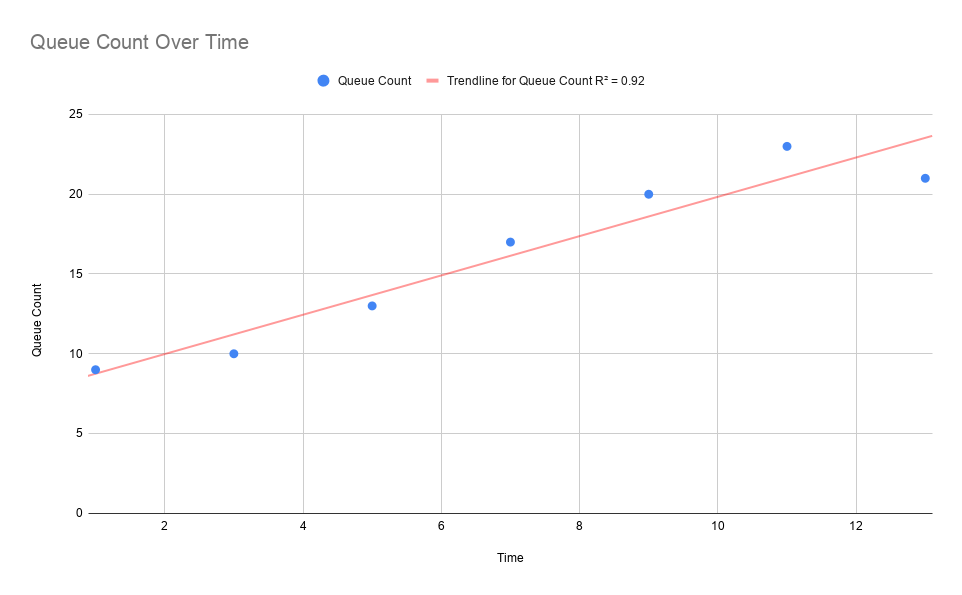 NiFi has an internal analytics framework which can be enabled to predict back pressure occurrence, given the configured settings for threshold on a queue. The model used by default for prediction is an ordinary least squares (OLS) linear regression. It uses recent observations from a queue (either number of objects or content size over time) and calculates a regression line for that data. The line's equation is then used to determine the next value that will be reached within a given time interval (e.g. number of objects in queue in the next 5 minutes). Below is an example graph of the linear regression model for Queue/Object Count over time which is used for predictions:
