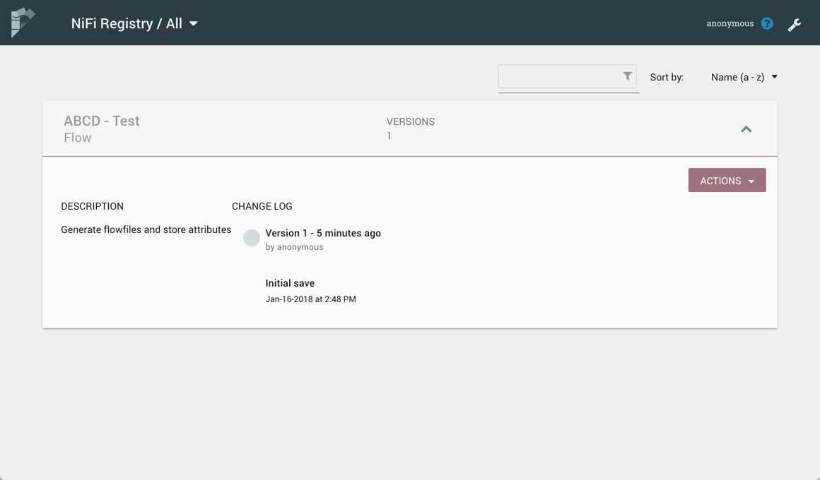 Go back to the Registry UI and return to the main page to see the versioned flow you just saved (a refresh may be required):