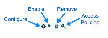 Once you have added a Controller Service, you can configure it by clicking the "Configure" button in the far-right column. Other buttons in this column include "Enable", "Remove" and "Access Policies".