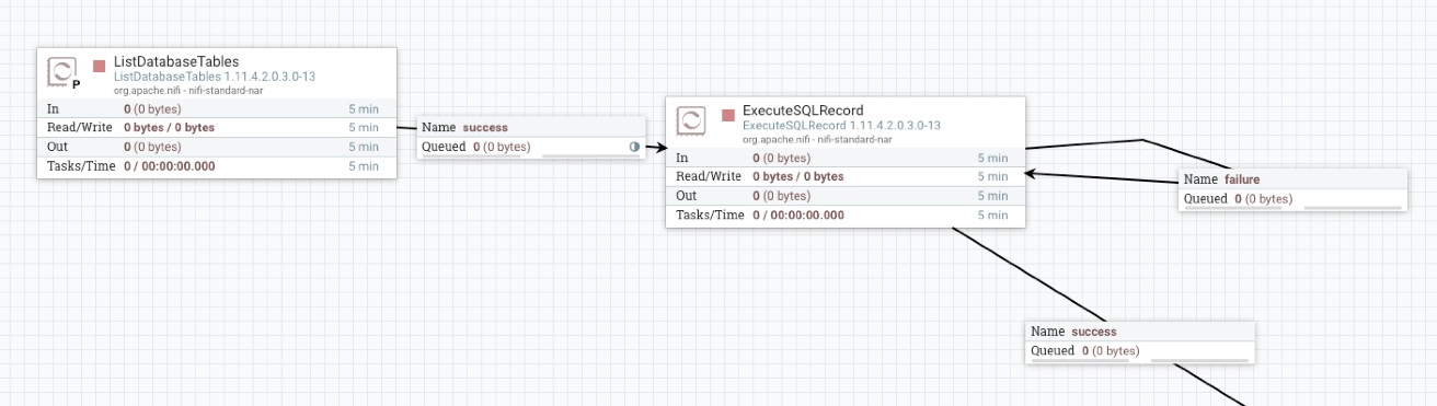 3. Click Add to close the dialog box and add the connection to your flow. Optionally, you can add success and failure funnels to your data flow, which help you see where flow files are routed when your data flow is running.