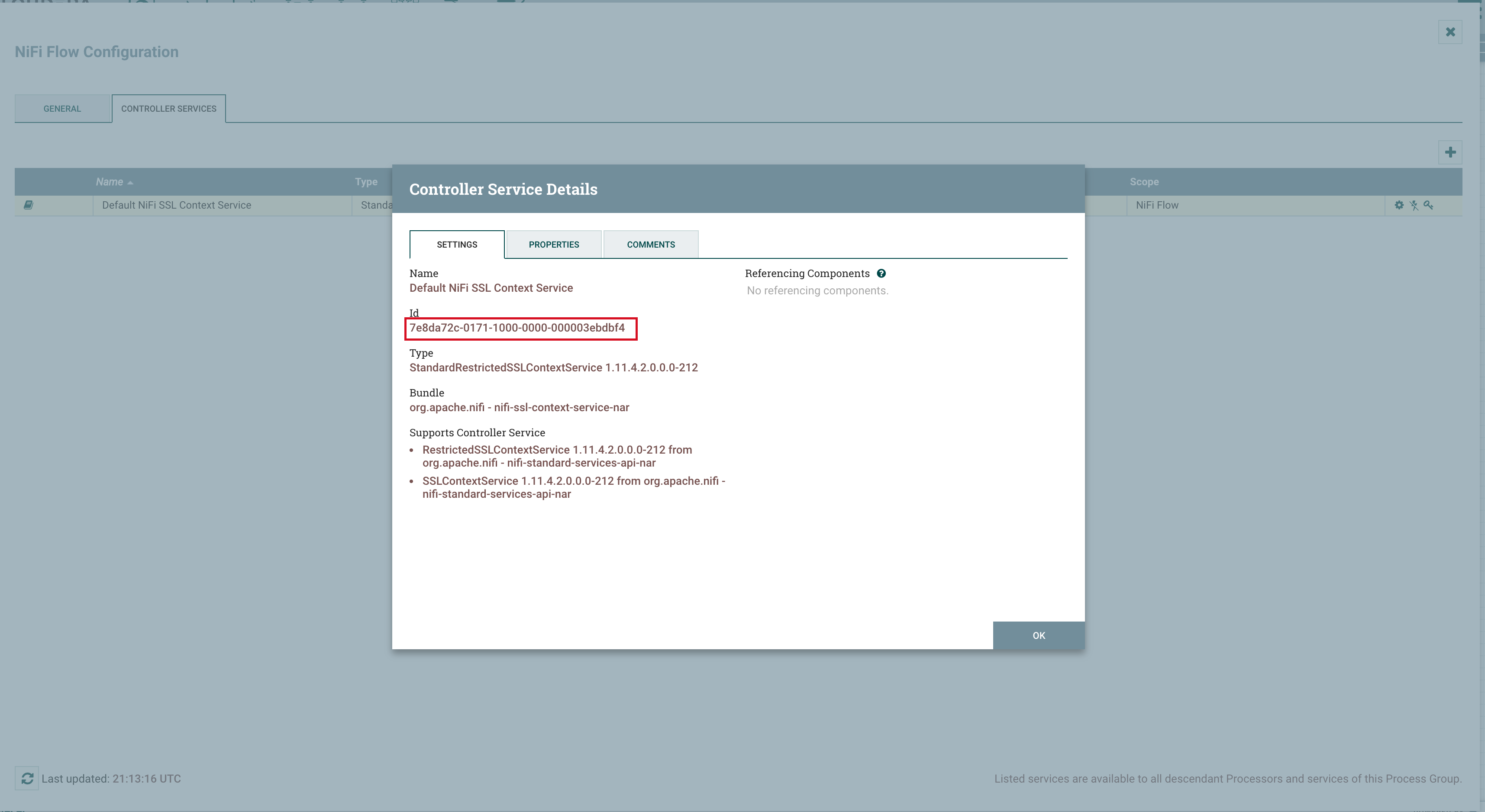 3. To locate the ID of the SSL Context Service: