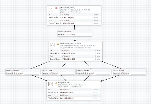 You have a flow that has a template named elastic_template, which was created from a process group called elastic. This process group contains the following simple flow: