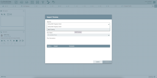 In the drop-down list, select the Registry Client configured to access your Cloudera DataFlow Catalog.