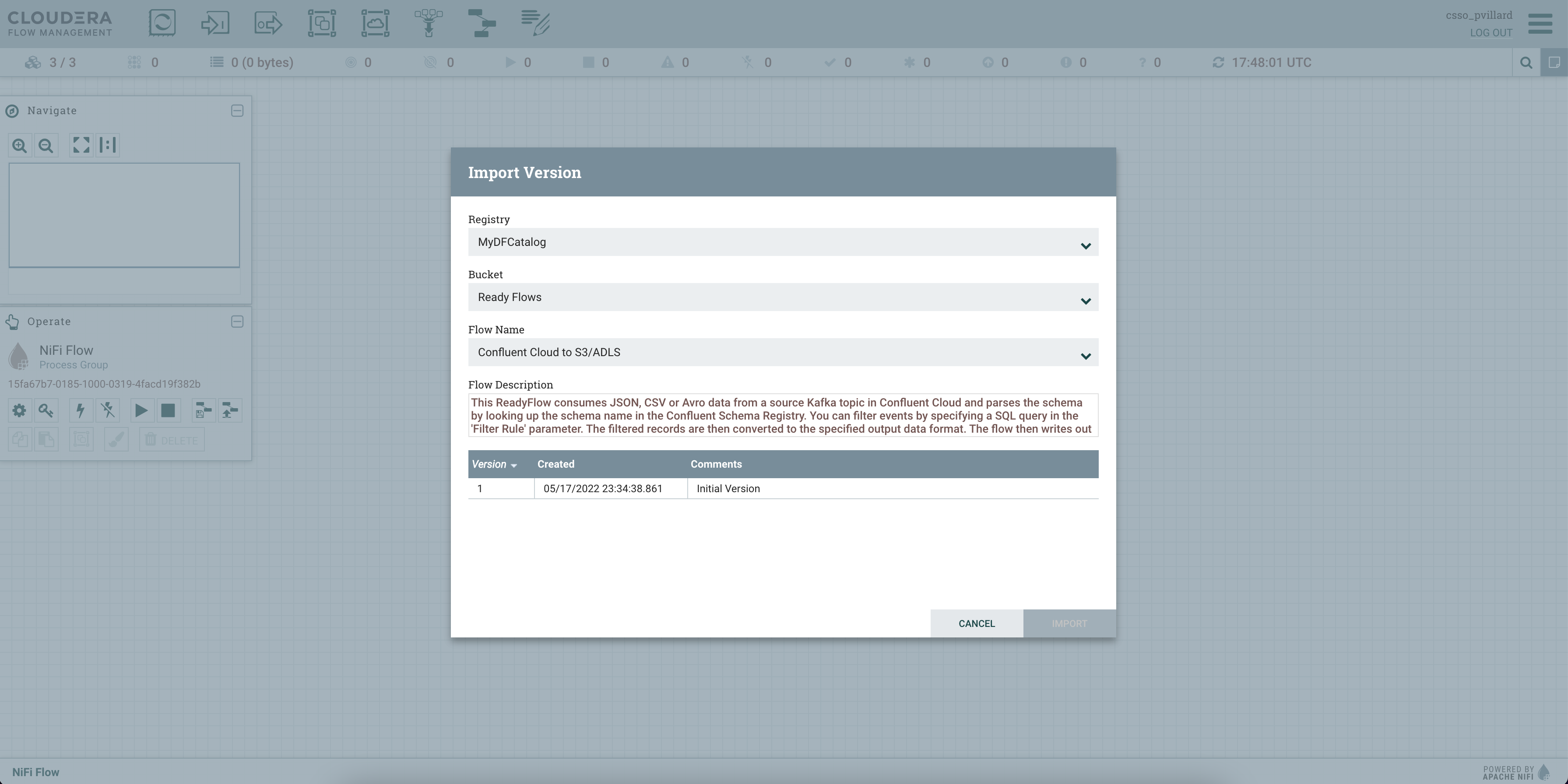 Select the ReadyFlow that you want to check out in NiFi by clicking the