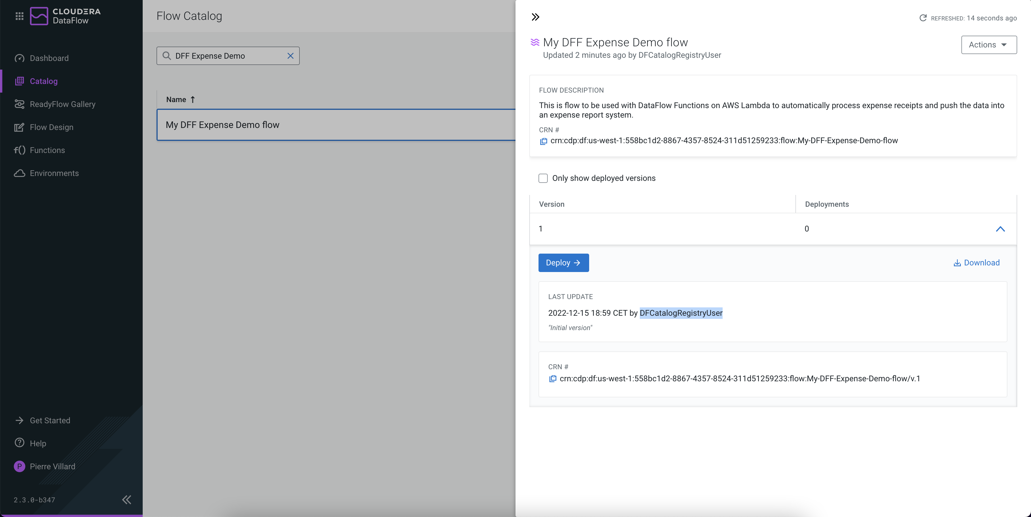 Versioning a flow in the Catalog