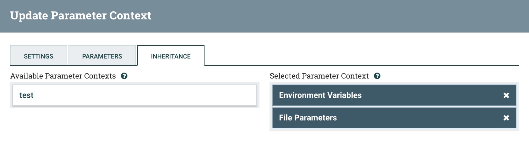 are added as inherited contexts to a new Parameter Context, “Parameters”. For details on
