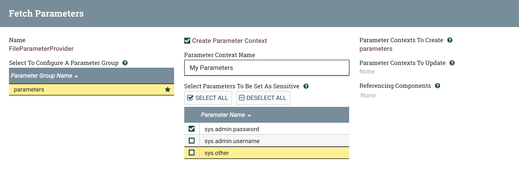 Creating a Parameter Context from a Parameter Group
