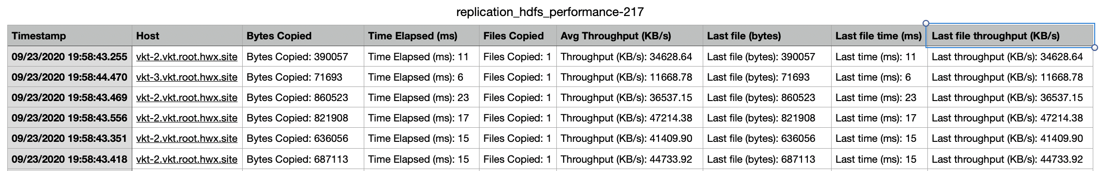 - Performance - Click to download a CSV file which contains a summary report about the performance of the running replication job. The performance summary report includes the last performance sample for each mapper that is working on the replication job.