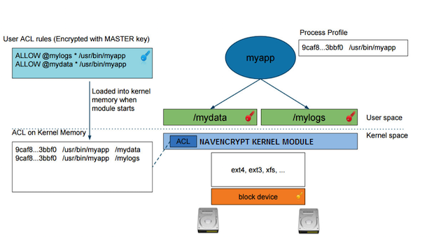 category @mydata.Navigator Encrypt uses a kernel module that intercepts any input/output (I/O) sent to an