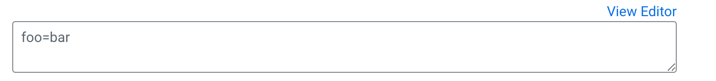 To switch between the editor and text field, click the View Editor and View Text links at the top right of the snippet row.