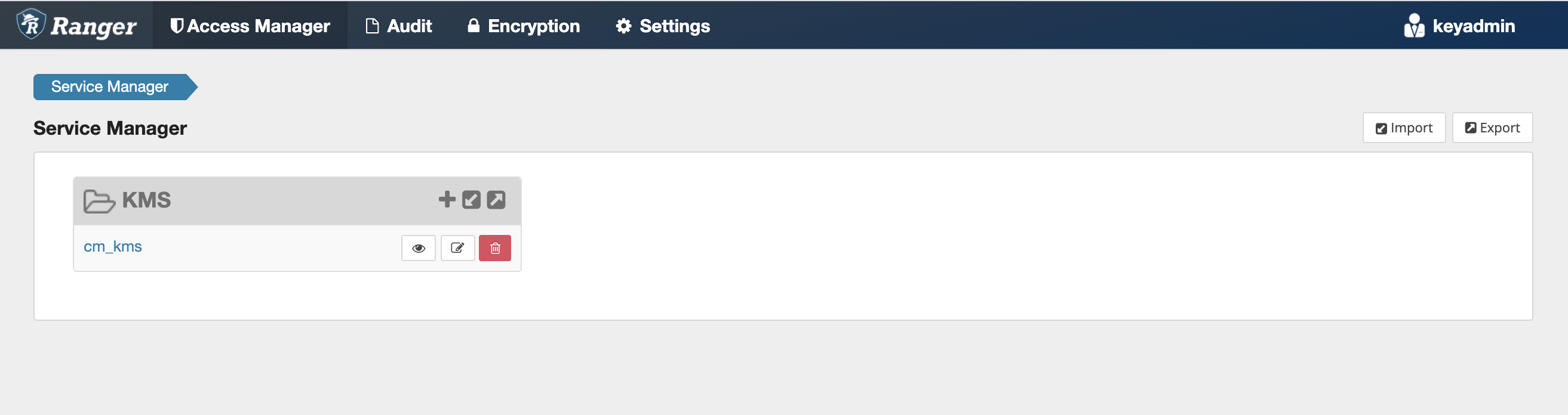 After logging in, the Service Manager page appears.