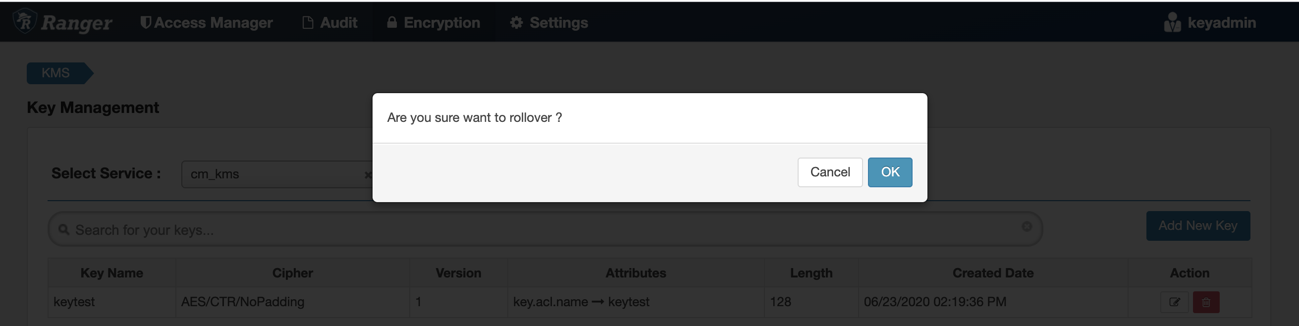 How to roll over an existing Ranger KMS key.