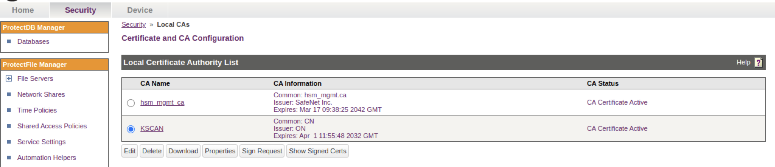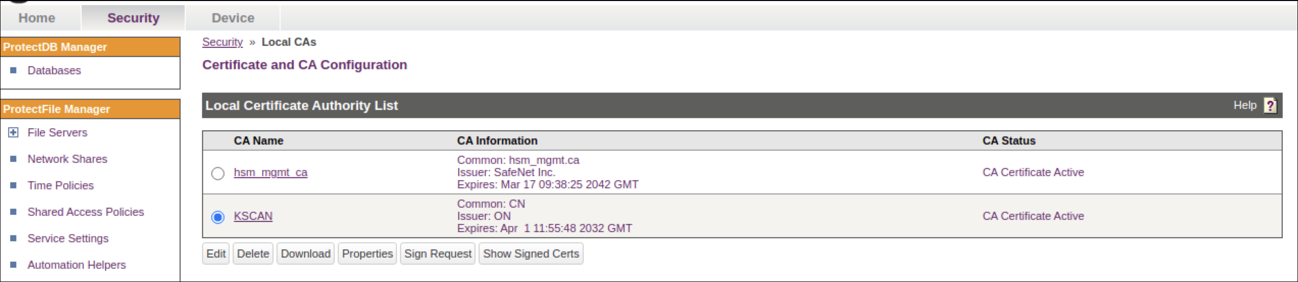 After SSL has been configured in Safenet KeySecure, perform the following steps.