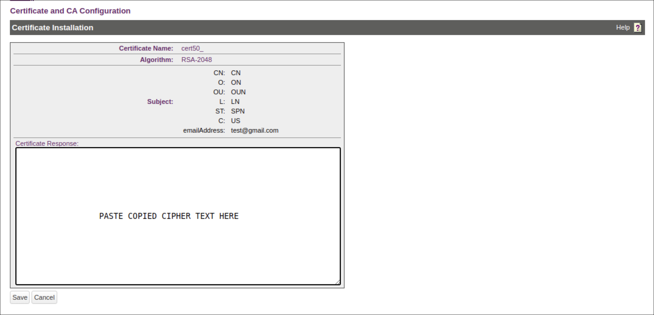 - Select the Server Certificate from the given drop-down list (for example, cert50).