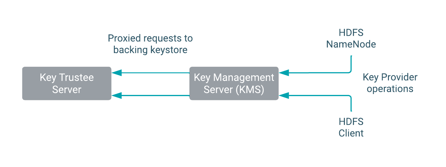However, most keystores are not designed for the encrypt/decrypt request rates seen by Hadoop workloads. This led to the development of a new service, called the Key Management Server (KMS), which serves as a proxy between HDFS clients and the backing keystore. Both the keystore and KMS must use Hadoop's KeyProvider API to interact with each other and with HDFS clients.