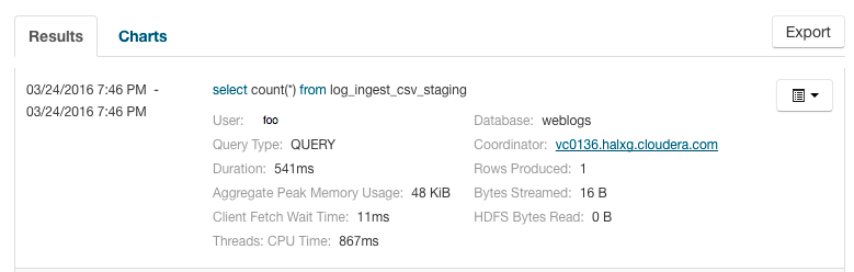 user, coordinator, database, and query type. For example: You can add additional attributes to the summary by clicking the