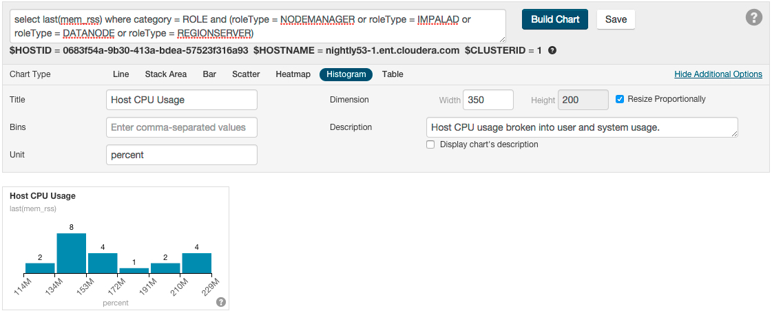- Click Charts > Chart Builder to access the chart, or click the chart on the Cloudera Manager home page and then View Entity Chart.