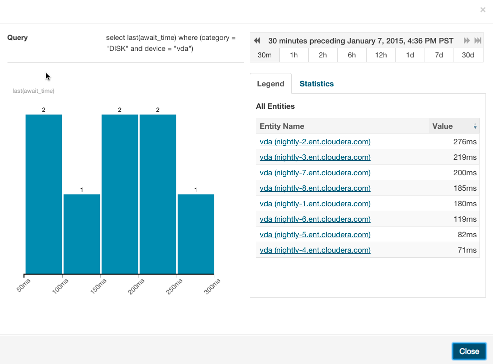 Clicking the < Back link at the bottom left of the line chart returns to the expanded histogram.