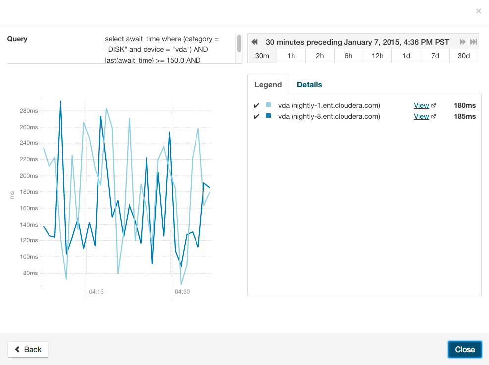 Clicking the < Back link at the bottom left of the line chart returns to the expanded histogram.