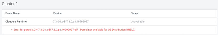 list of parcels managed by Cloudera Manager. Cloudera Manager displays the name, version, and