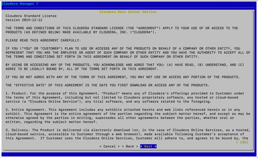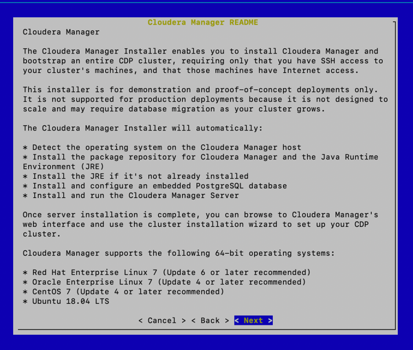Run the Cloudera Manager installer to the cluster host to which you are installing the Cloudera Manager Server. By default, the automated installer binary (cloudera-manager-installer.bin) installs the highest version of Cloudera Manager.