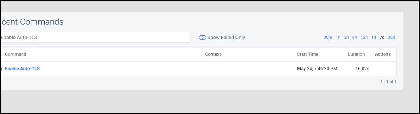 Table 1. JSON file key properties Property Data type Description customCA boolean Option to generate an internal Cloudera Manager CA (false) or use user-provided certificates (true). When set to true (user-provided certificates), the following other arguments must be given: * cmHostCert * cmHostKey * caCert * keystorePasswd * truststorePasswd cmHostCert string The certificate for the Cloudera Manager host in PEM format. Only used if customCA == true. cmHostKey string The private key for the Cloudera Manager host in PEM format. Only used if customCA == true. caCert string The certificate for the user-provided certificate authority in PEM format. Only used if customCA == true. trustedCaCerts string A list of CA certificates that will be imported into the Auto-TLS truststore and distributed to all hosts. - When this API returns successfully, you should see the recent command run as
